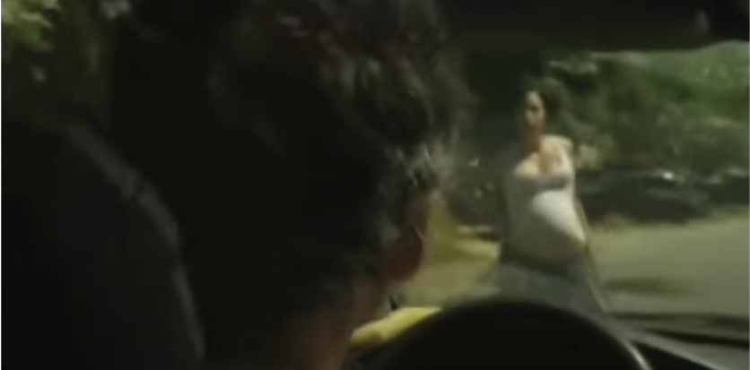 Figura 5: La mujer embarazada en su ataque-sorpresa al taxi en Hija del sol.