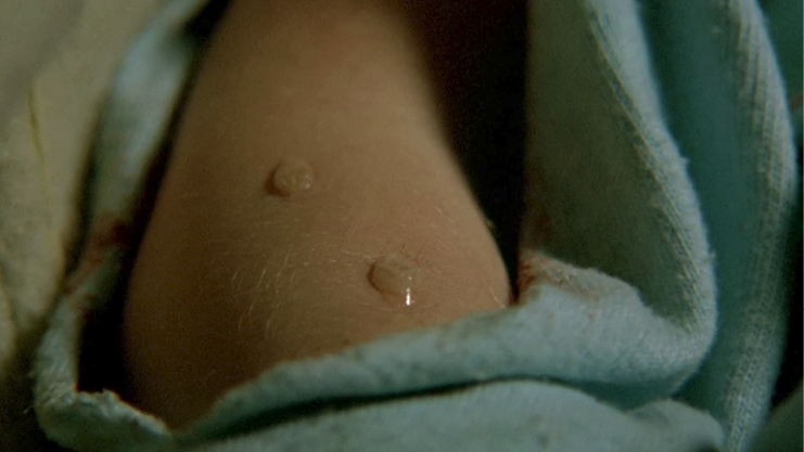 En su análisis sobre el cine de Cronenberg y la relación con la Nueva Carne, Pilar Pedraza ha mencionado el sentido de extrañeza presente en el desarrollo de estas apariencias corporales ligadas a la enfermedad. Se incrementa una anomalía de la materia que obedece a la alteración o afección de la carne. El cuerpo se presenta como una virtualidad teratológica con capacidad de transformarse en artefactos monstruosos. Sea por mecanismos del cerebro, por negligencias científicas o por desviaciones del sistema imperante, la genética corporal es modificada con resultados inesperados. De esta manera, la figura materna psicoplásmica encarnada en Nola se funda en una fuerza centrífuga, desde el interior hacia el exterior, en consonancia con su pasado angustiante y turbulento3. El factor desencadenante de su comportamiento y los posteriores cambios corporales obedecen a un impulso primario que reside en el sentimiento de odio que Nola experimenta hacia sus padres por los abusos que habría soportado de niña, lo cual dará origen a esta nueva especie de niños-clones con las características mencionadas. El recorte cinematográfico donde el espectador descubre la formación orgánica y artificial en el cuerpo de Nola puede observarse como una imagen-movimiento, concepto desarrollado por Jacques Aumont y Michel Marie4. Para estos autores la noción de imagen-movimiento posee un valor teórico e histórico, y adquiere una cualidad que la distingue del resto. La gestualidad y transformación del cuerpo se complementa con esta matriz artificial, origen del feto recién nacido, y abre la antesala de una atmósfera ominosa que precede a la muerte. Imagen-movimiento que perturba y sorprende, cuando se comprende cómo nacen los niños. A partir de estas reflexiones nos interesa examinar de qué modo es visualizado el cuerpo femenino, qué sentidos adquiere con relación a la dicotomía activo-pasivo, cómo opera la metamorfosis y, finalmente, qué tensiones surgen en torno al papel de Nola en el film.