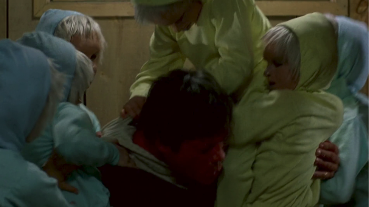 Al descubrir que Nola es quien engendra a estos seres de comportamiento violento, Frank la estrangula hasta matarla y luego escapa con la niña en auto. Como muchos films de terror, hay signos que anuncian que el peligro no termina en ese momento. En este caso mediante una toma cercana de la cámara se observan en el brazo de Candice las mismas lesiones manifiestas en los cuerpos de los niños.