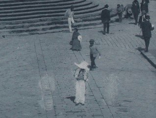 Figura 1. Fotografía de Domingo Laso donde se aprecia el retoque para borrar o disfrazar a los pobladores indígenas. Imágenes tomadas del libro “Quito a la vista”.