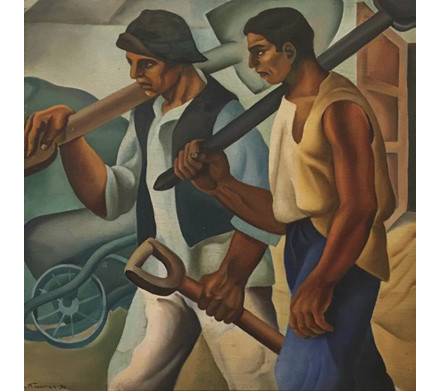 Figura 2. “Los obreros de la White”. (1934). Eduardo Kingman. Óleo sobre Tela. Colección Museo del Banco Central del Ecuador. Fotografía registro personal.