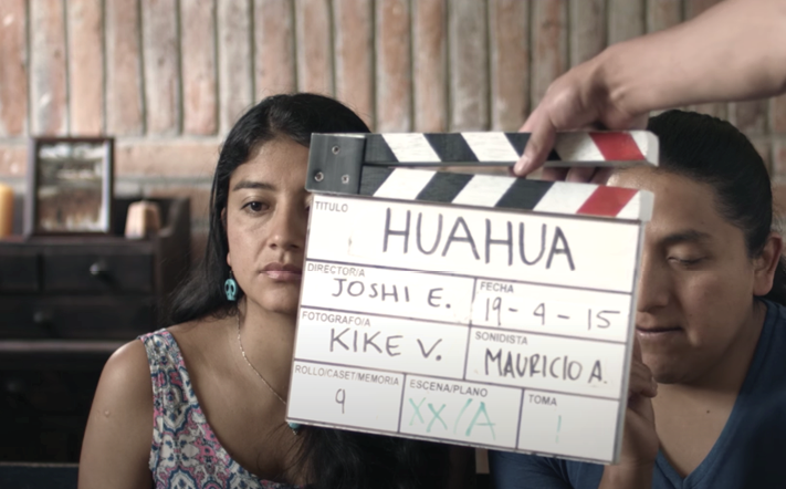 La película Huahua30 (2017) es un proyecto que demoró cuatro años en realizarse, nació con la idea de ser un cortometraje partiendo del cuestionamiento sobre la identidad y la necesidad de ser protagonista en la creación de una memoria colectiva que tiene que ver con el lugar de procedencia y la ascendencia familiar, las producciones realizadas previamente por el director se han visto marcadas por usar como herramienta a su propia persona y todas las situaciones que le afectan y configuran como ser humano. La forma de producción también es un factor importante ya que combina la formación informal con la formación profesional, Joshi Espinosa comenta que tuvo formación en el cine, pero Citlalli Andrango no tuvo ninguna experiencia previa, por lo cual tenían varias dudas sobre el resultado de la película tomando en cuenta que eran ellos mismos quienes iban a dirigir, producir, actuar, editar31.