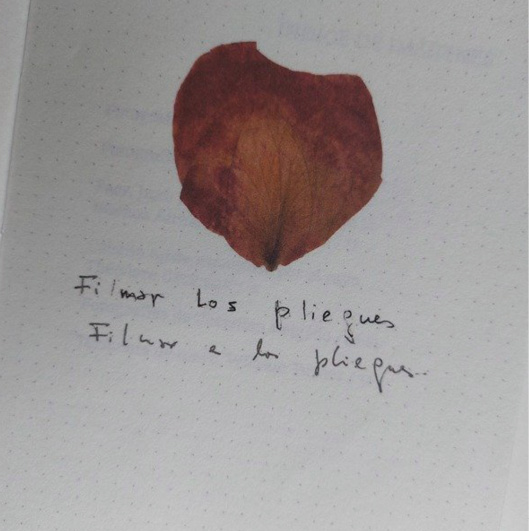 Cuadernos del merodeo es a primera vista un cuaderno de rodaje, un hermoso libro-objeto donde confluyen apuntes sobre películas acabadas (La terminal1), esbozos de guiones inéditos (la ficción Ramón Vázquez y la transposición de la novela homónima de Juan José Saer, Nadie nada nunca), citas de autores, imágenes y muchas flores. No obstante, su maravilla reside en lo que se nos permite entrever, en aquella fugacidad que se encuentra en el centro mismo de cada uno de esos fragmentos heterogéneos que lo componen: una praxis poética. Con estos Cuadernos del merodeo Gustavo Fontán clausura la trilogía que tuvo su inicio con Maraña. Escritos sobre cine y continuó luego con Del Natural. Cuadernos de trabajo, donde el autor expone una poética centrada en la experiencia. Una experiencia ligada a la relación disonante entre el autor y el mundo, donde la percepción se des-automatiza y transita en el terreno de lo inefable, de lo epifánico, de lo inasible. Se nos presenta así un mundo rasgado, como Fontán lo llama, donde “ya no estamos frente a una belleza de postal ni a un conocimiento univoco sobre el mundo, sino frente a la experiencia de los saberes delicados, disruptivos, perturbadores”2. Es así como podemos pensar la poética cinematográfica de Fontán ligada a una idea propia de la experimentación que deviene de un intento de transponer un tipo de percepción literaria al cine3. En otras palabras, ese intento por restituir en el cine esa experiencia propia de lo literario nos devuelve un tipo de percepción sin ataduras, ya no regida por los imperativos del mercado, y que nos revela (de ahí su potencia epifánica) la opacidad y la inarmonía del mundo, su rasgadura. Es la imagen del cuerpo de Wenceslao bajo el agua transformado por la refracción de la luz solar en El limonero real4, o ese río que deviene una amalgama de luces y colores en el momento en que su imagen del pasado se funde con su imagen del presente en La orilla que se abisma5.