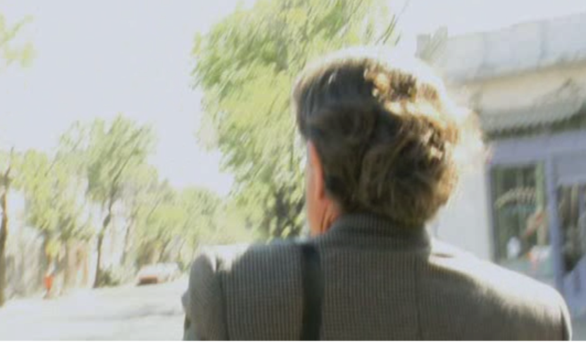 Al inicio de la película, los créditos parpadean en la pantalla sobre un fondo negro. En off, una profusión de sonidos se va fundiendo y confundiéndonos: un coche que arranca, música rock que sale de altavoces de mala calidad, el silencio. No es posible imaginar qué ambiente es este y solo después de un jump cut que revela la imagen, observamos, en picado, a un hombre de mediana edad, elegante, solo, que camina lentamente, yendo y viniendo, en una esquina. No hay coches y el susurrar de un árbol que casi nos tapa la visión se junta al canto de pajarillos que toma la calle desierta.