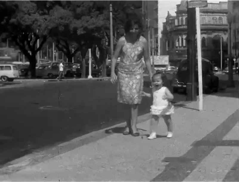 Fotograma de una película casera (anónima) que registra a una niña aprendiendo a caminar (En el intenso ahora, João Moreira Salles, 2017).