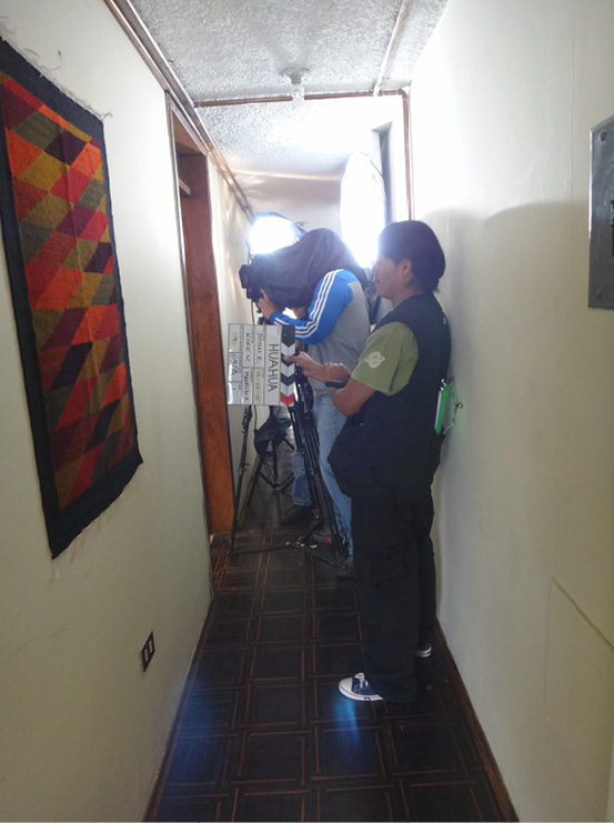 Detrás de cámaras durante la filmación de la película Huahua, de Joshi Espinosa Anguaya y Citlalli Andrango.